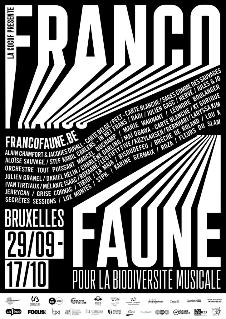 Quand la musique francophone se réinvente. Quand elle s’offre une nouvelle jeunesse dans une programmation actuelle et surprenante. FrancoFaune, c’est 10 jours de musique en français. Une quarantaine de concerts, dans plus de 15 lieux bruxellois, au mois d’octobre.