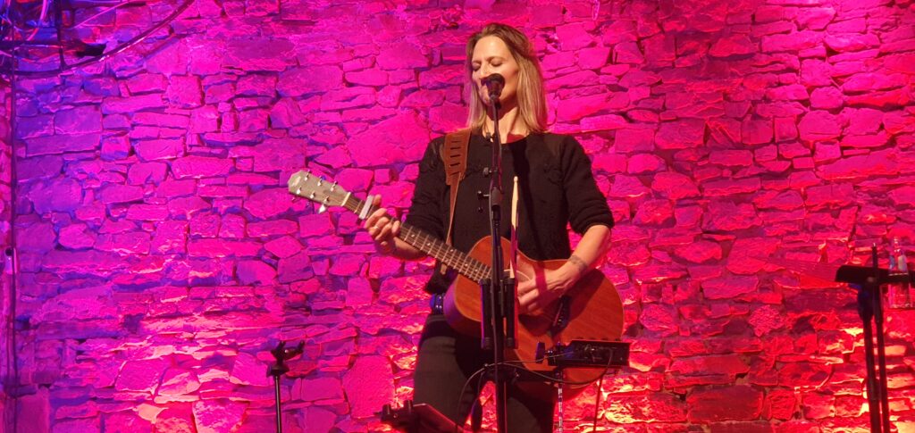 … C’est en effet dans l’écrin de l’Abbaye Notre-Dame du Vivier à Namur, que Beverly Jo Scott offrait au public namurois un voyage musical à la fois intense et émouvant, accompagné par le duo français, Pur-Sang, à la guitare, à la basse aux chants.