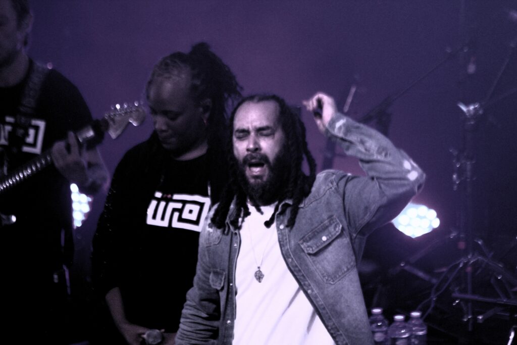 Le spectacle visuel n’est jamais en reste. Le jeu de lumières traduit chaque titre par une identité visuelle et parfois des effets stroboscopiques (si..?… sujet aux crises d’épilepsie – fermez les yeux !) épousant les ambiances sans jamais les écraser. Des teintes vert-jaune-rouge très « Roots » assumées sur les hymnes reggae, des flashes blancs et des balayages rapides pour les passages plus dancehall : tout est millimétré, mais reste suffisamment fluide pour conserver la chaleur du live. Par instants, les faisceaux découpent la fumée (des fumigènes, hein !) en halos qui enveloppent Taïro et ses 2 choristes ainsi que ses musiciens, donnant au concert une dimension presque … cinématographique.