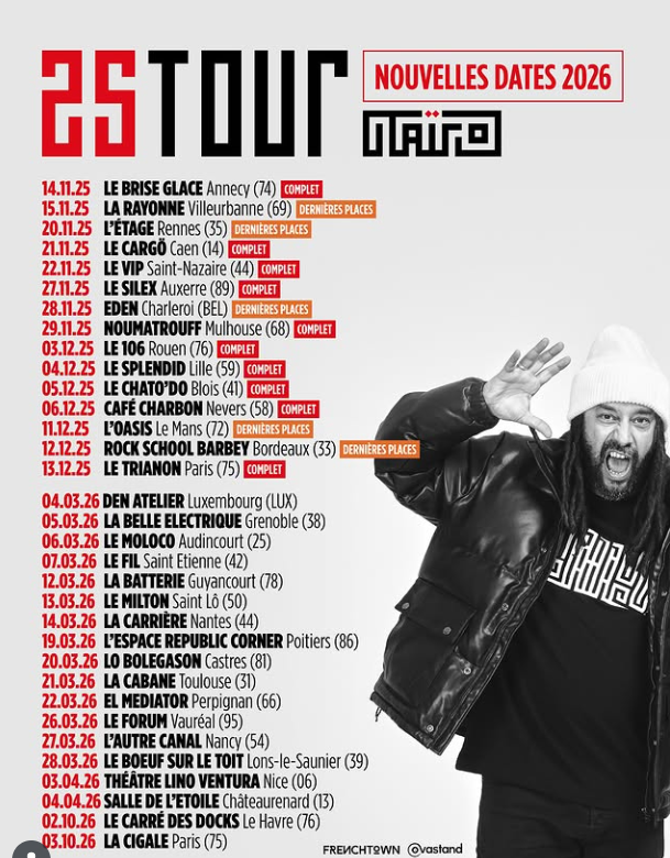 Pour ceux qui auraient loupé son concert à l’Eden, il est prévu une date au Grand-Duché de Luxembourg : le 04.03.2026 au @denatelier, ainsi que plusieurs dates en France et dans des villes proches de la frontière franco-belge … A bon entendeur, foncez …car, les places partent « comme des petits…joints » !
