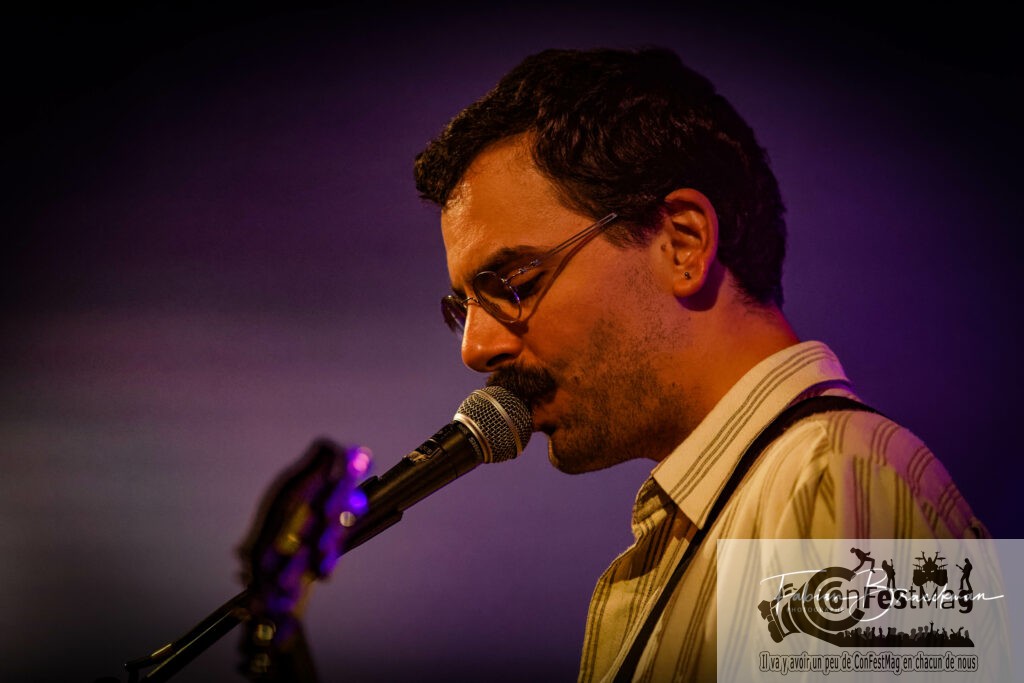 Pierres est le projet solo de Pierre Leroy, un musicien bruxellois aux multiples talents. Depuis 2019, il a créé un véritable espace de liberté pour lui-même, où il laisse libre cours à toutes les facettes de sa personnalité. Sa musique, un mélange de french pop et d’expérimentation, offre des échanges introspectifs entre les différents « Pierres » qui l’habitent, avec des claviers électrisants répondant aux guitares acoustiques, des hymnes autotunés alternant avec des ballades fragiles, et des mélodies catchy aux comptines enfantines. Après la sortie réussie de son premier album, « Disque de platine » en été 2021, suivi de concerts en Belgique, en France et en Suisse, Pierre poursuit ses recherches kaléidoscopiques à travers trois nouveaux EP, chacun explorant une facette différente de Pierres. Bien que la liberté de composition et d’arrangement soit toujours présente, ces nouvelles productions se distinguent par des refrains entraînants, des rythmes dansants et des mélodies plus accrocheuses, témoignant de l’ambition pop de l’artiste. Pierres est prêt à se produire sur scène pour les Nuits Botanique, où son univers extravagant promet une expérience musicale unique. En tant que musicien aux talents multiples, Pierre Leroy offre un spectacle passionnant et engageant pour les fans de musique pop indépendante. Sous l’oeil et l’ouie du photographe. Au cœur du festival des Nuits 2023 du Botanique, un artiste captivant attire l’attention des festivaliers et des curieux : Pierres. Je suis toujours à la page et à l’affût des artistes talentueux, et Pierres est indéniablement l’un d’entre eux. Bien que je le suive de loin parfois, il ne cesse de me surprendre par sa créativité et son originalité. Il explore des idées là où d’autres auraient peur de s’aventurer, et c’est ce qui fait de lui un artiste unique en son genre. Si vous cherchez une combinaison du charme de Pierre Perret, de la tendresse d’Henri Dès, de l’énergie de Chantal Goya et de l’esprit espiègle de Patrick Sébastien, alors vous ne serez pas déçu par Pierres. Son talent est une richesse qui mérite d’être découvert par des producteurs audacieux et visionnaires. Je ne me fais pas d’illusions, je sais que le meilleur de notre bruxellois moustachu, qui se balade souvent en pantacourt comme s’il était sorti d’une autre époque, reste encore à venir. En attendant ce grand moment, Pierres nous fait voyager à travers différents espaces du festival. Il passe d’une pièce de la commune de Laeken à la majestueuse Rotonde du Botanique, en faisant un transit par le chaleureux Grand Salon. Tout cela me confirme que tout prend de l’ampleur, et dans deux ans, nous aurons le plaisir de le retrouver sous le chapiteau, en avant-première d’une star qui émergera des talents soigneusement sélectionnés par les organisateurs des Nuits 2024. Assister aux performances de Pierres lors des Nuits 2023 du Botanique fut encore une fois enrichissante a tout point de vue et plonger dans l’univers captivant de cet artiste hors du commun, c’est tout le mal que je vous souhaite. Laissez-vous emporter par sa créativité, sa passion et son originalité, car il est certain que Pierres marquera l’histoire de la scène artistique. Ne manquez pas cette occasion de découvrir un talent en devenir, car nul doute que le futur lui réserve de grandes choses. Pour voir d’autres clichés du soir : https://www.facebook.com/wizfabphotos