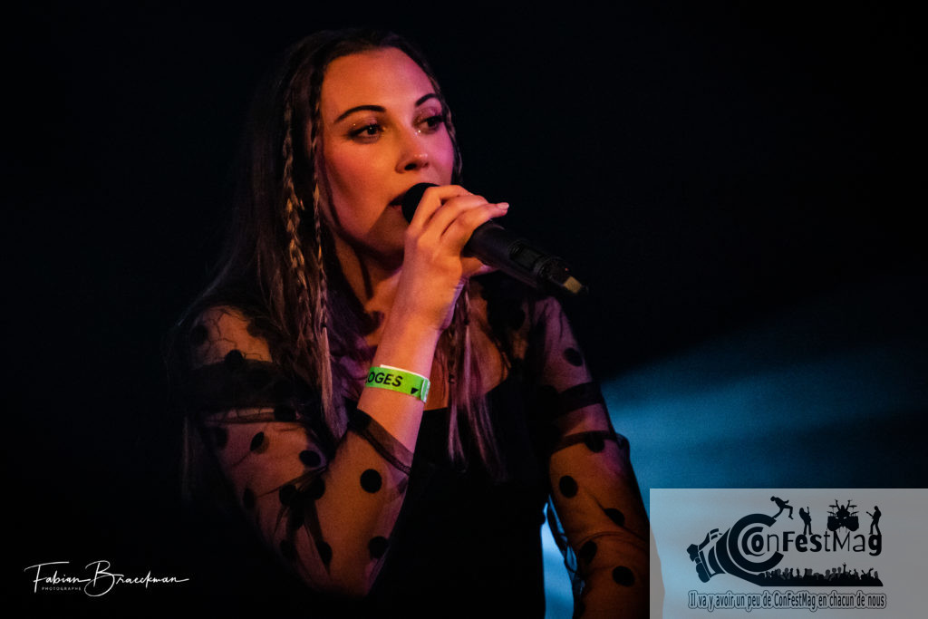 Le début des fêtes de la francophonie, rime souvent avec concerts. Le premier pour Confestmag, c’ est ce jeudi en plein coeur de Louvain-la-Neuve, dans la cité estudiantine déjà en fête a en juger sur les fréquentations des cafés, et plus précisément à la ferme du Bièreau. Pour les habitués du lieu, c’est le premier concert après confinement, les travaux des écuries battent leurs pleins… Mesures sanitaires obligent, masques, gel et espace d’un siège entre les bulles …et c’est Tanaë, qui a l’honneur d’assurer la première partie de la soirée. Tanaë (Shana Seminara de son vrai blaze) est une artiste belge, de Liège, qui a de larges influences, style Amy Winehouse, Billie Eilish voir d’autres, très pop. Les prémices de cette artiste ont commencés sur le net avec une reprise de Aqua « Barbie Girl ». Mais comme son rêve était de monter un jour sur scène et d ‘abandonner ses études de psychologies, elle abandonna l’idée de covers et en 2018 elle sort « Introspection » produit d’ un futur album « Talking to myself ». Confestmag l’avait déjà apprécié au regretté Festival de Seneffe. Le concert de ce soir était prévu pour le mois d’avril, mais, toujours ce satané virus, avait décidé de nous priver de bonnes choses,… …Tanaë arrive sur scène, spots braqués sur elle, vêtue d un long ciré noir, bottes noires, style new wave, sur « Fire of Us ». Le public est directement conquis, il y a ceux qui découvre et les autres qui voudraient se dandiner sur les airs entraînants, mais a part se trémousser sur les sièges, on déguste quand même. On enchaîne les titres comme « No Way », « Stay », « Time is up », le temps d’enlever le ciré noir, et de découvrir un peu les épaules, et une blouse toujours noire, mais plus sexy. On continue avec « One Night », « Need your Love », le temps d ‘apprécier le batteur qui fredonne quasiment tout les titres « Taking », « Mirrors », et un guitariste excellent qui viendra pour faire un titre que Tanaë a écrit pour une amie,… qui n’ a pas écouté le conseil de « Listen ». On se quittera sur » Loneliness », avec un goût de trop peu, même si on la retrouve le lendemain pour un titre entrainant avec danseurs(voir l’article Fête grand-place). La soirée n’est pas finie place à Juicy… Résumé et Photos : BRAECKMAN Fabian
