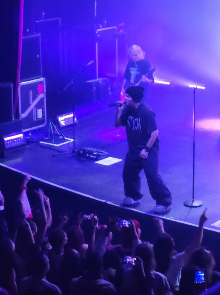 Petit moment plus calme avec « October and April » chanté en duo par Lauri et Emppu, le temps de vérifier si besoin que la voix de Lauri, c’est juste « Wow », et ça repart de plus belle avec « First day of my life », « Creatures of chaos », « F-F-F-Falling » et  » Not like the other girls » ! Lauri et Eero communiquent régulièrement avec leur public. Car on a vraiment l’impression que c’est leur public qui est descendu en ligne droite d’Helsinki.